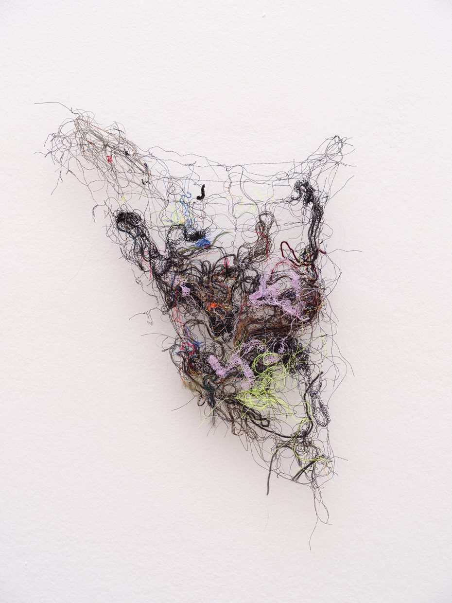 In this groupshow about collectivity and friendship, i was invited to show 10 of these works that I have been making from threadcuttings of my friends’ atelier, in which the colorful sequence of their projects makes up a new fabric.