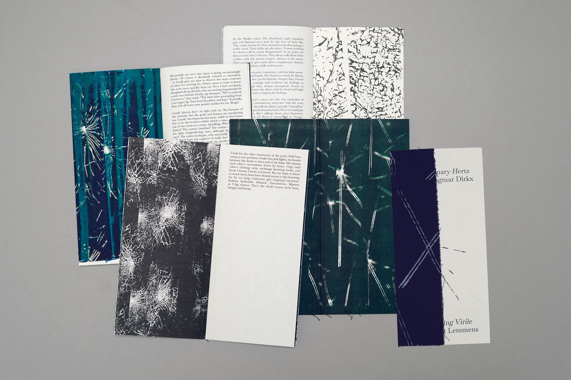 During that process they invited Dagmar Dirkx to experiment with writing a text in parallel to their work. The text Ten Non-Binary Hertz arose from a conversation between the Dagmar and Ot about how trans-masculinity in relation to desire, violence and the idea of passing.